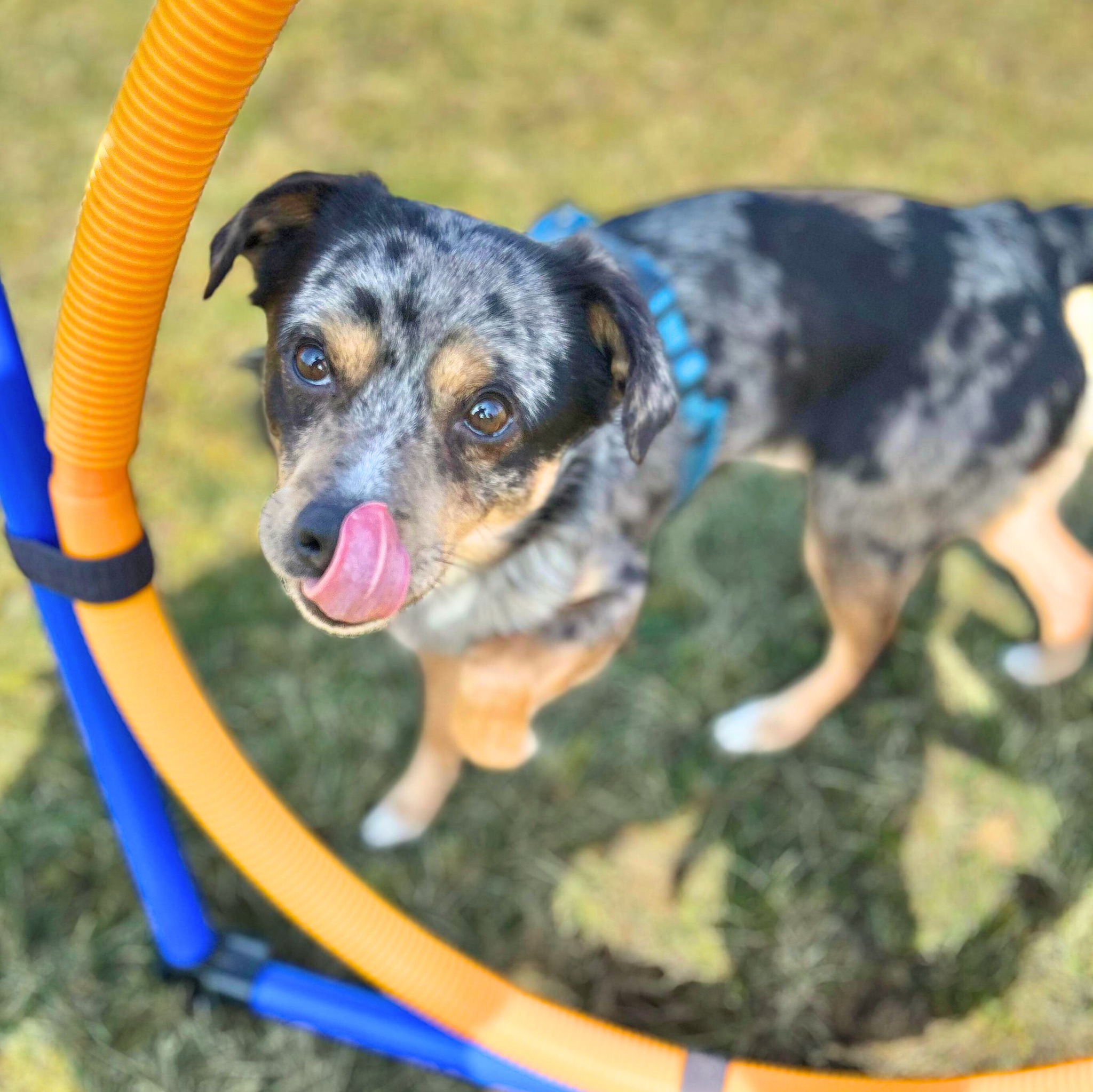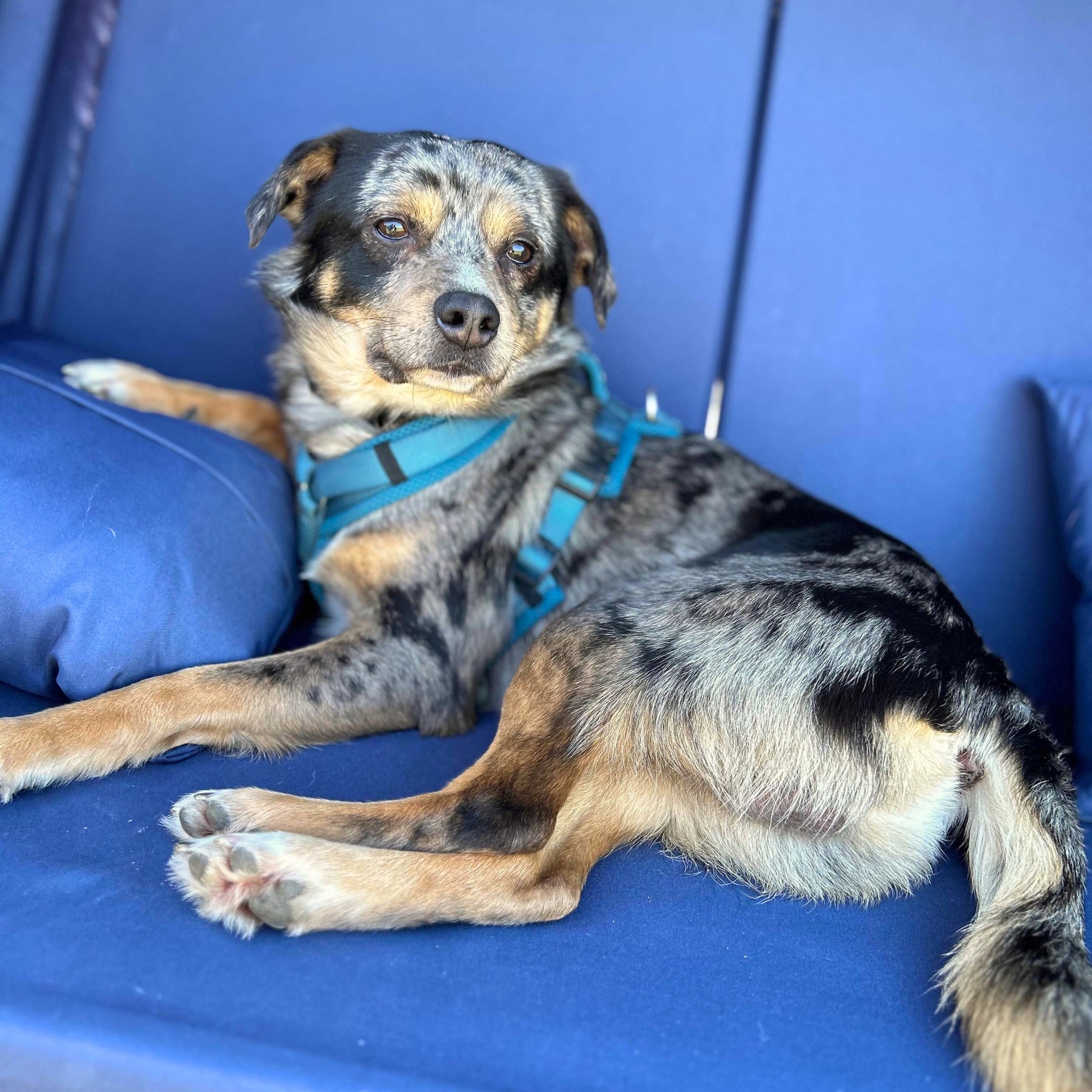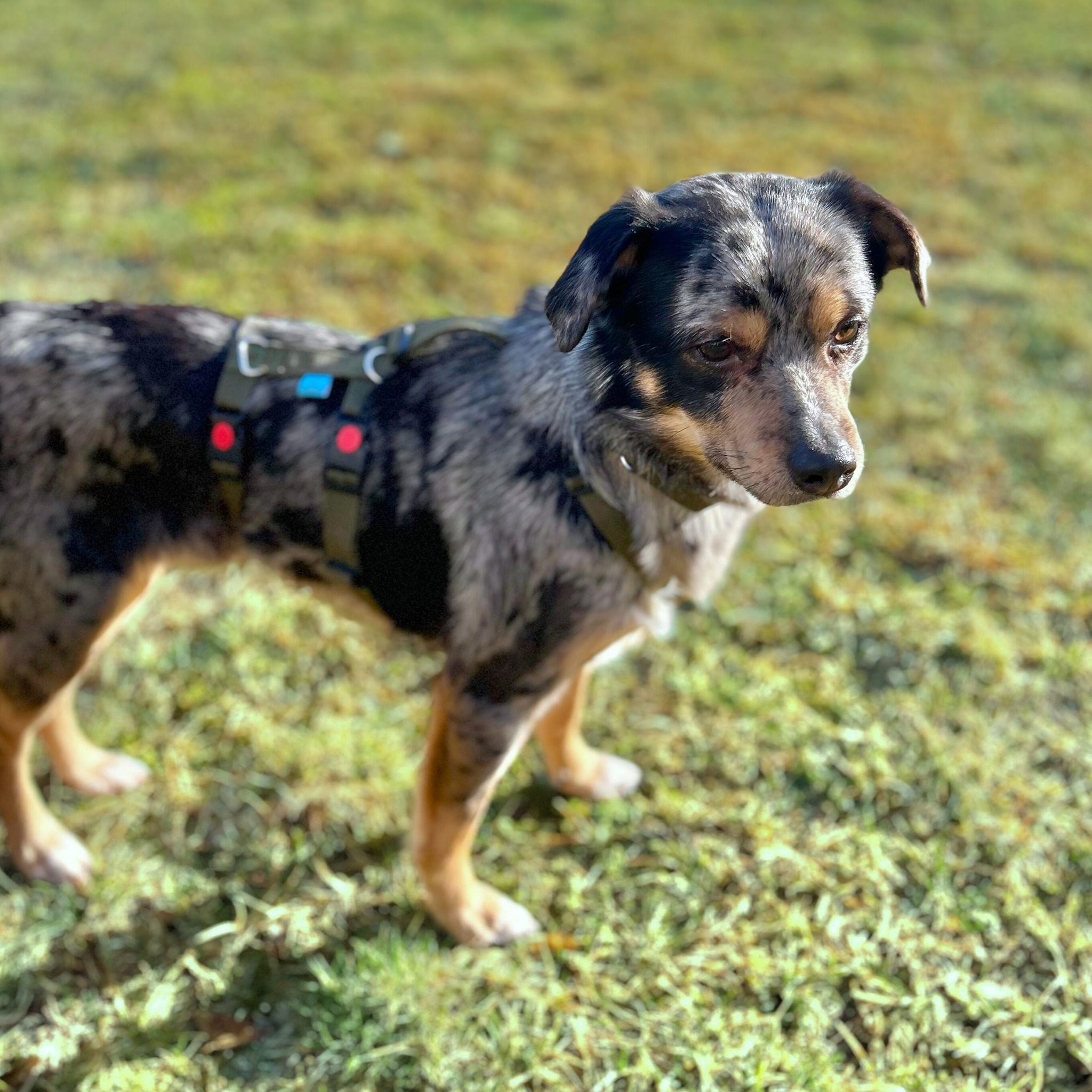 Elmar ist ein zweijähriger, 40 cm großer und 12 kg leichter Rüde, vermutlich ein Mix mit Anteilen von Australian Shepherd und Corgi.