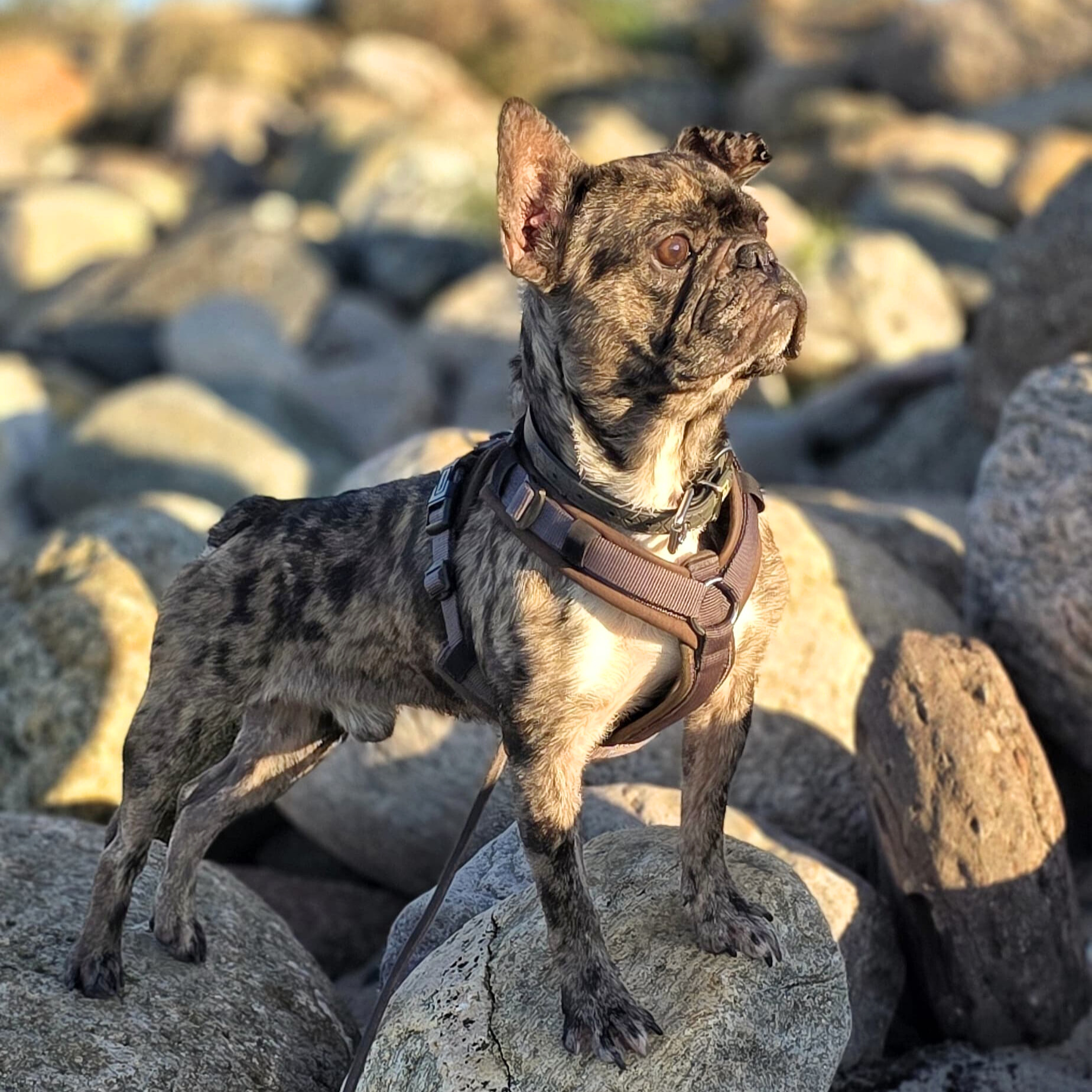 Gismo ist einer der Frenchies aus der Berliner Vermehrerhölle und der Sohn von Debbie. Der Besitzer hatte Gismo, seine Geschwister und (auf unsere Forderung) die Mutterhündin bei uns abgeben, nachdem er keine Käufer für den Nachwuchs fand. Alle Hunde kamen in lebensbedrohlichem Zustand auf ihren Pflegestellen an. Auch Gismo war stark abgemagert und fraß alles, was er finden konnte. Doch erst beim Tierarzt erhielten wir die wirklich erschütternde Nachricht: Gismo leidet an einer Herzerkrankung – Hochgradige Pulmonalstenos (Verengung der rechten Herzkammer). Von einer Operation hat der Herzspezialist abgeraten und auch für Medikamente ist Gismos Herzfrequenz aktuell zu niedrig.