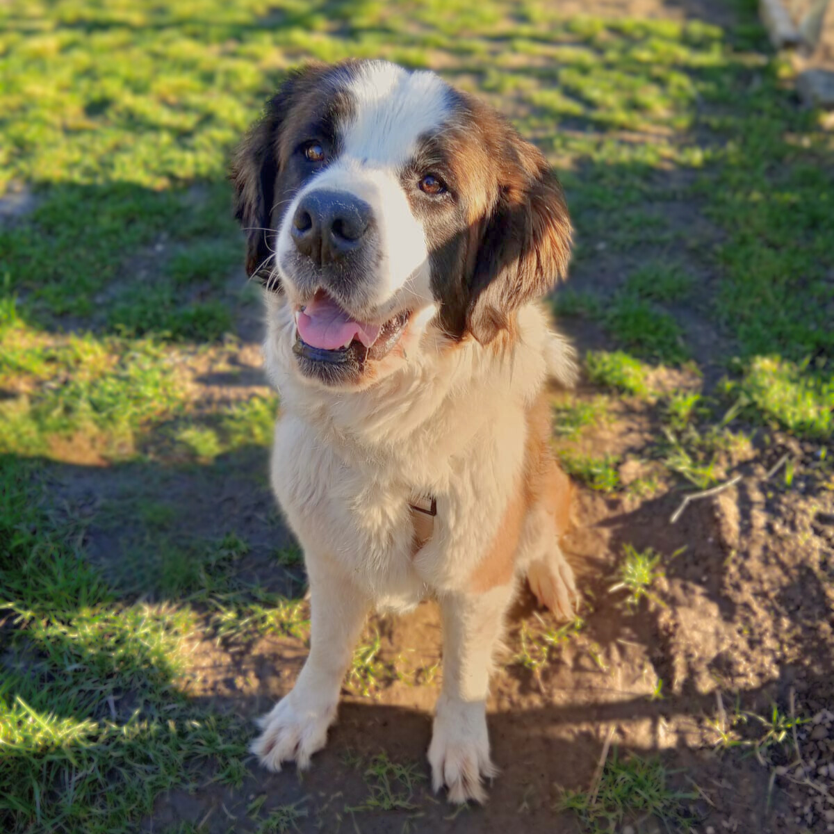 Josy kam in sehr vernachlässigtem Zustand zu uns. Die Halter gaben sie auch aus finanziellen Gründen ab. Das möchten wir natürlich nicht verurteilen – wir hätten uns nur gewünscht, dass man früher unsere Hilfe gesucht hätte. Denn bei einer Schulterhöhe von 70 cm wog Josy nur noch 27 kg und war damit stark untergewichtig. Zum Vergleich: Ein Bernhardiner dieser Größe sollte 60–90 kg wiegen.