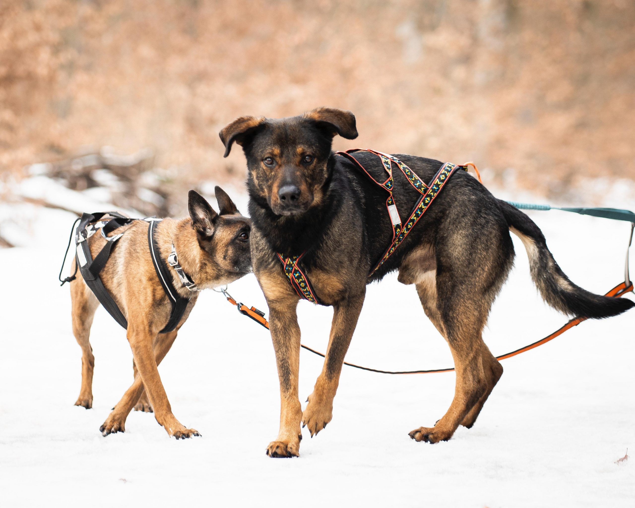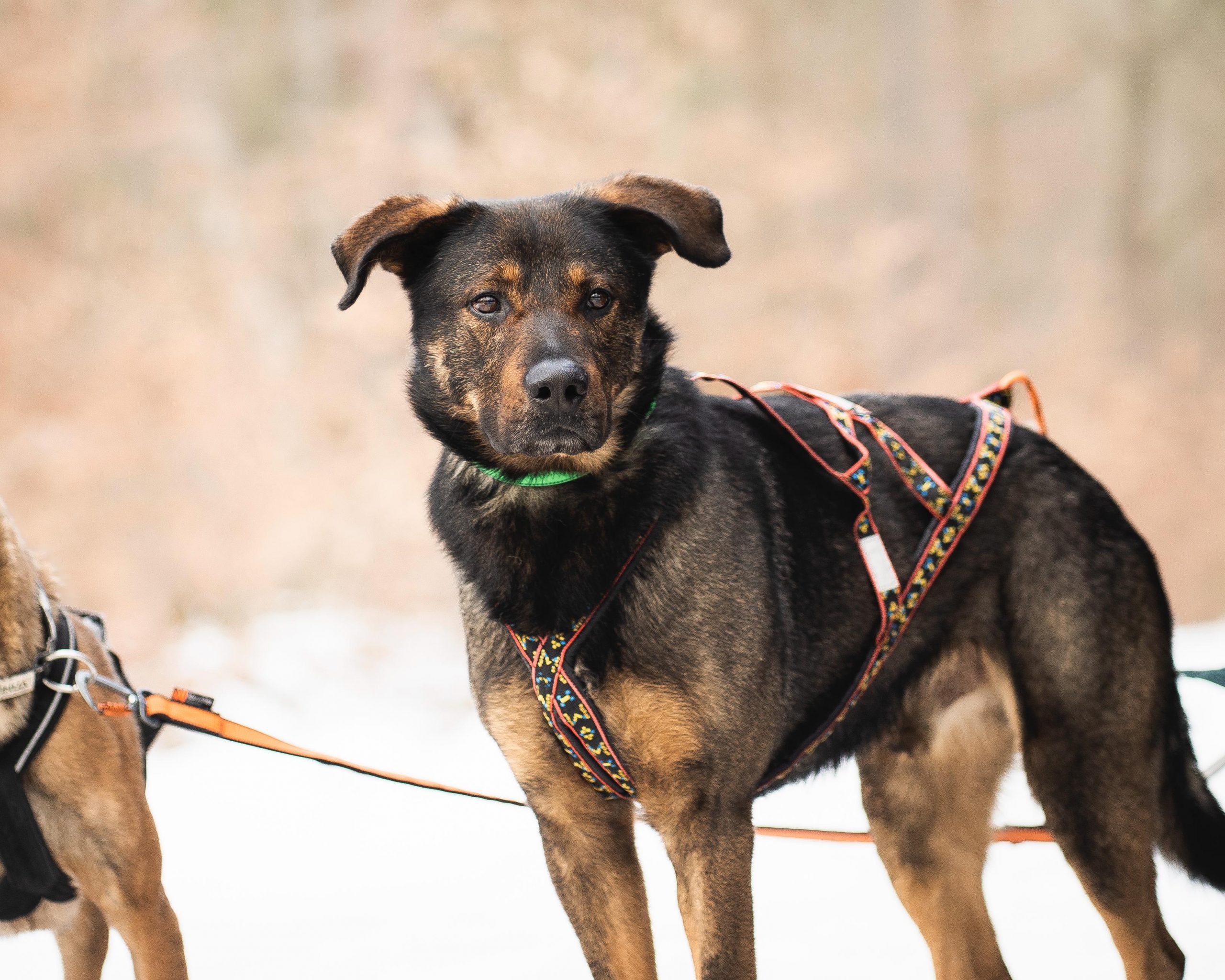 Zwischen Wiesen und Feldern konnte Loki gut an der Leine laufen und hatte Spaß an der gemeinsamen Arbeit. Er kennt die Basics der Unterordnung sowie Wandern und Laufen im Zuggeschirr.